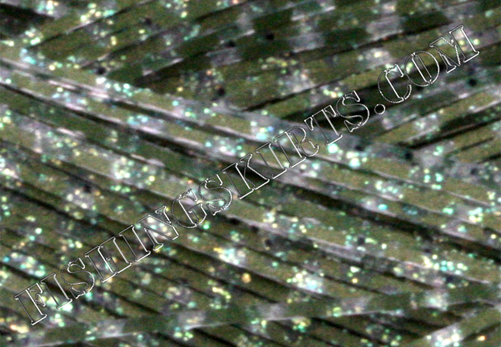 Baby Bass is made with Clear Green Crystal Black Flake (132) with a light green printed fish scale pattern throughout. 22 strands per tab. 10 tabs per pack