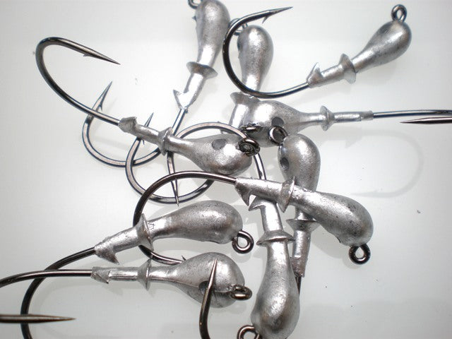 BOSS sparkie unpainted 10 pack 1/2 oz. BOSS Sparkie UNPAINTED Jig heads are built with a Mustad #32786 premium black nickel ultra-point hook, 4/0 in 1/4 oz. and 3/8 oz. and a 5/0 in the 1/2 oz. Sold 10 per pack.
