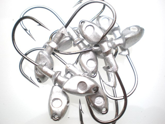 The Boss Swim Jig Unpainted features a Mustad 32886 4/0 30 degree black nickel hook. There is no weed guard and is ready for paint, with no prep required.? The Swim Jig takes a 1/8" weed guard and has holes for 3/16" eyes.? Sold 10 per pack.