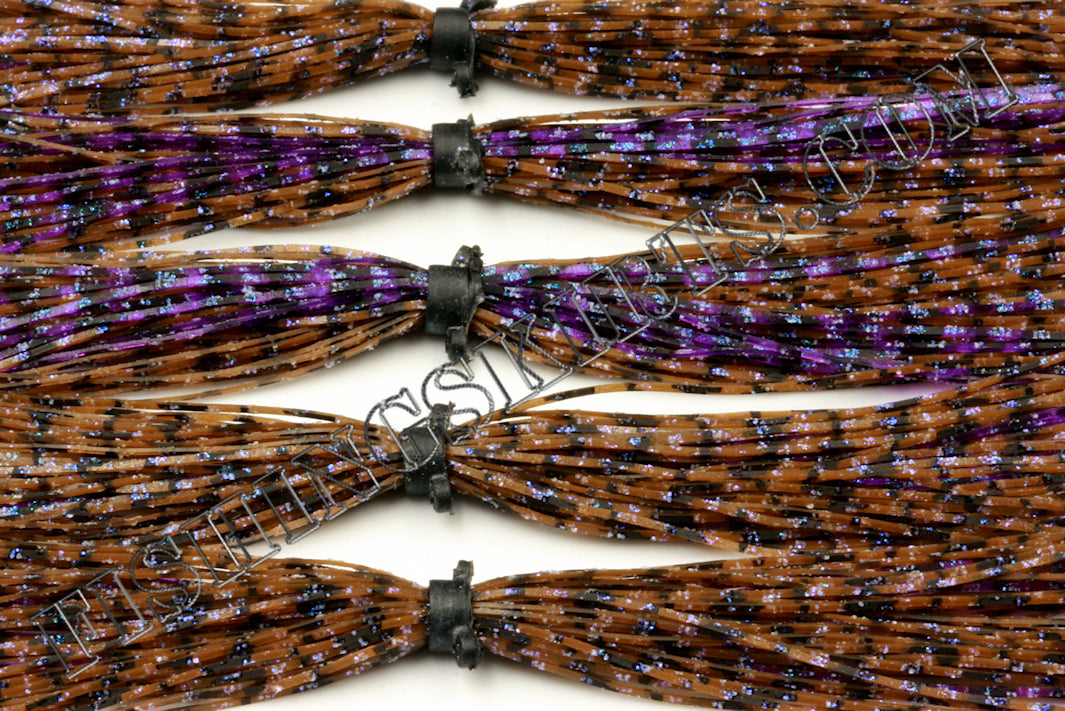 5 pack of 55 strand 100% silicone skirts with rattle band in peanut butter and jelly. These BOSS banded replacement skirts are made of 100% super responsive silicone for an unmatched action, and some of the most eye and fish catching colors and patterns ever seen!