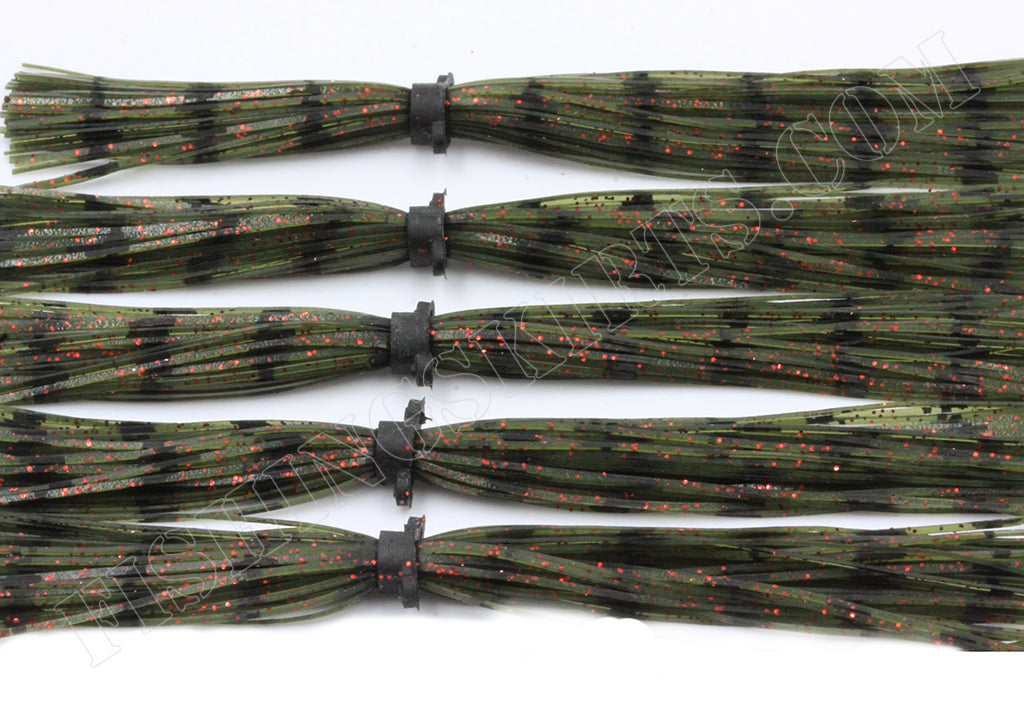 BOSS banded skirts, 55 strand 5 pack skirts watermelon red glitter black half wired print. These BOSS banded replacement skirts are made of 100% super responsive silicone for an unmatched action, and some of the most eye and fish catching colors and patterns ever seen.