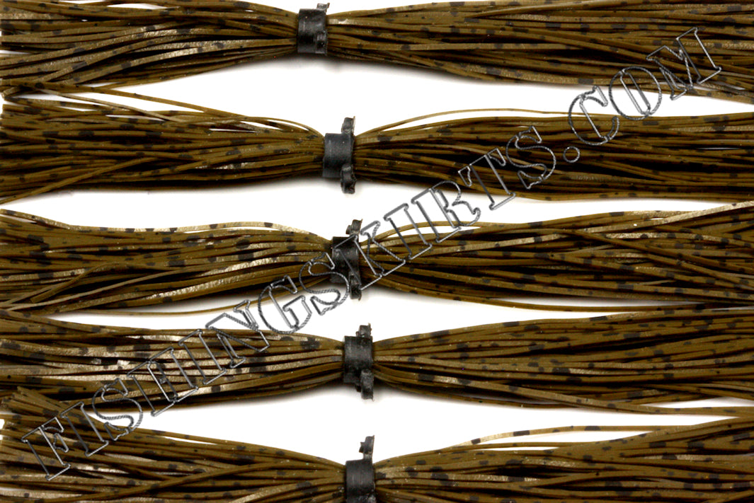 BOSS Banded Skirts, Green Pumpkin, 55 strands per skirt, sold as 5pk. These BOSS banded replacement skirts are made of 100% super responsive silicone for an unmatched action, and some of the most eye and fish catching colors and patterns ever seen.