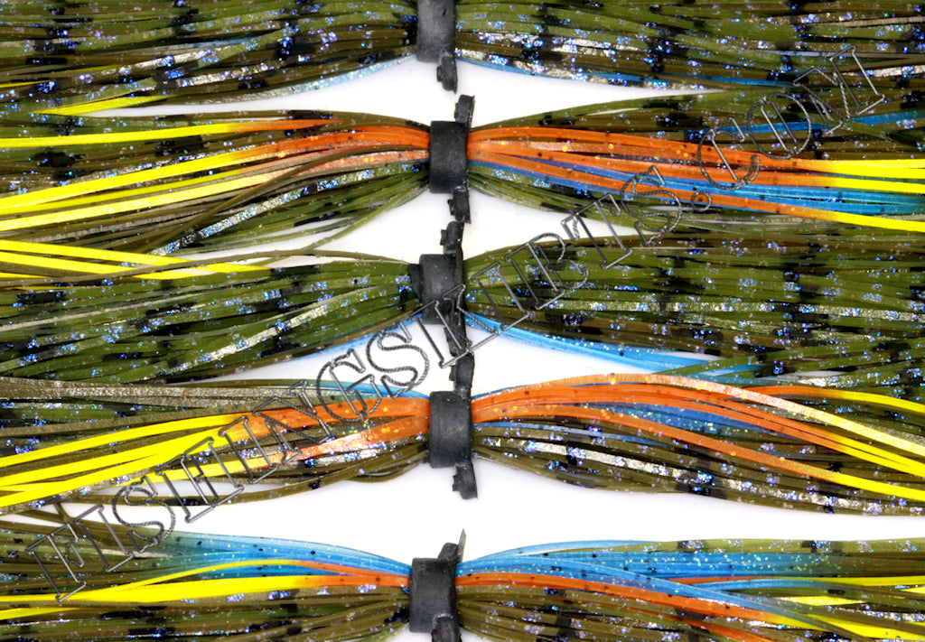 BOSS banded skirts, Bluegill, 55 strands per skirt, sold as 5pk.??These BOSS banded replacement skirts are made of 100% super responsive silicone for an unmatched action, and some of the most eye and fish catching colors and patterns ever seen.
