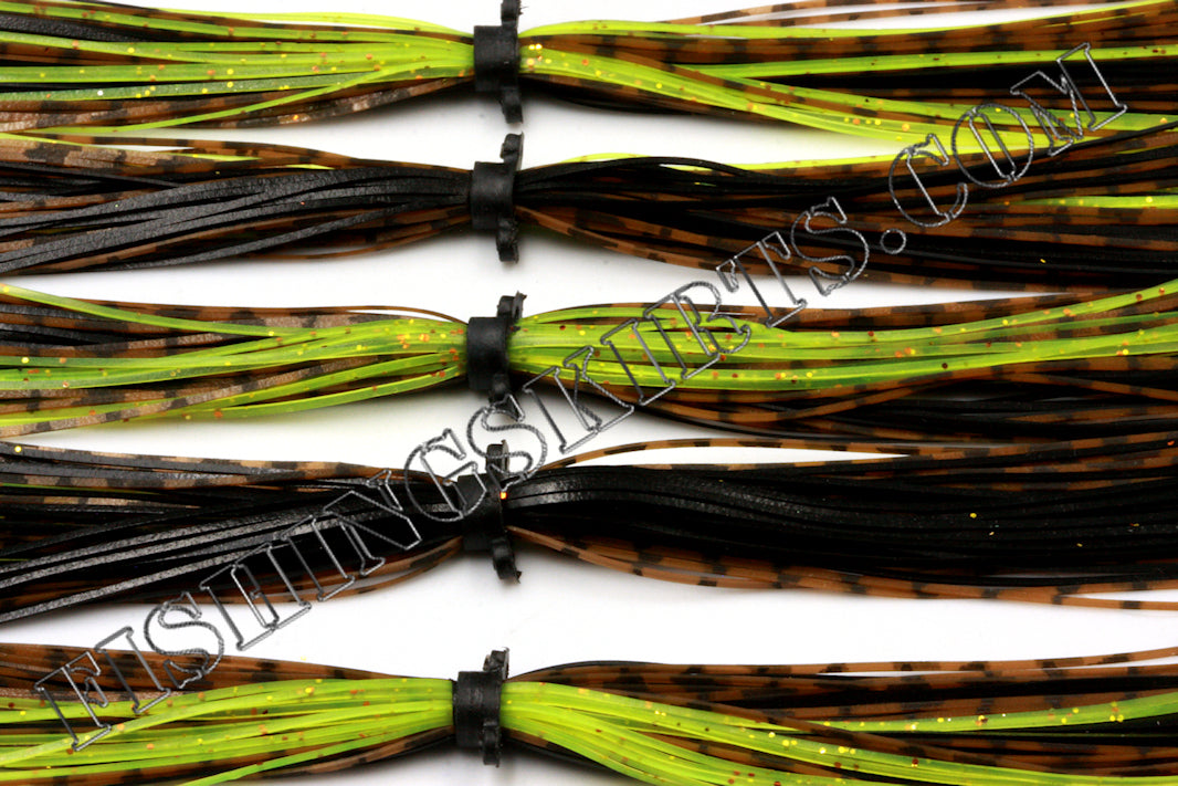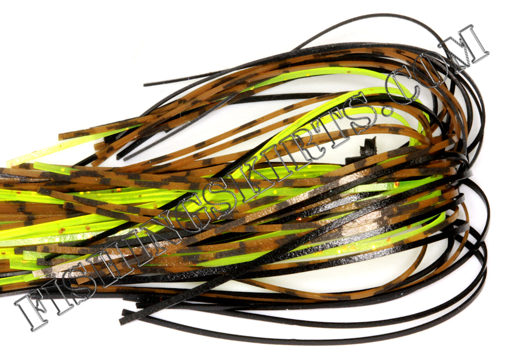 BOSS banded skirts, Muddy Water Craw, 55 strands per skirt, sold as 5pk. These BOSS banded replacement skirts are made of 100% super responsive silicone for an unmatched action, and some of the most eye and fish catching colors and patterns ever seen.