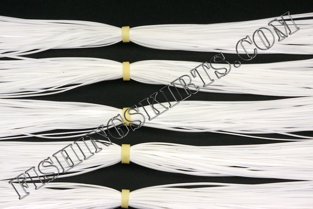 BOSS Banded Skirts, solid white, 5 pack of 55 strand 100% silicone skirts with off white band.