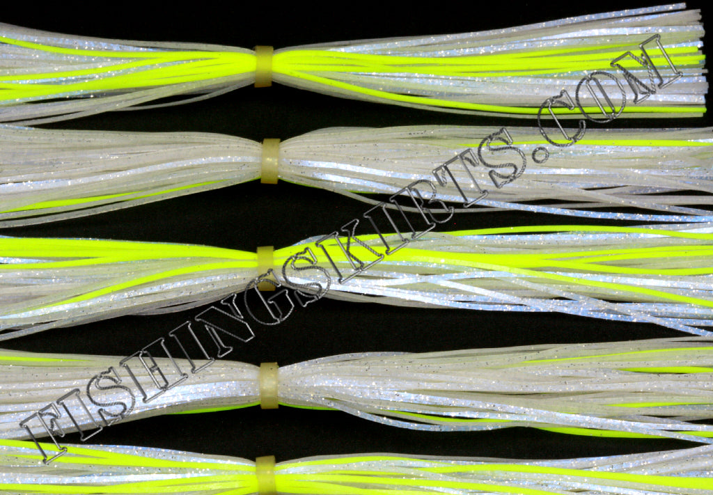 BOSS Banded Skirts, Hot Glimmer, 5 pack of 55 strand 100% silicone skirts with clear band.