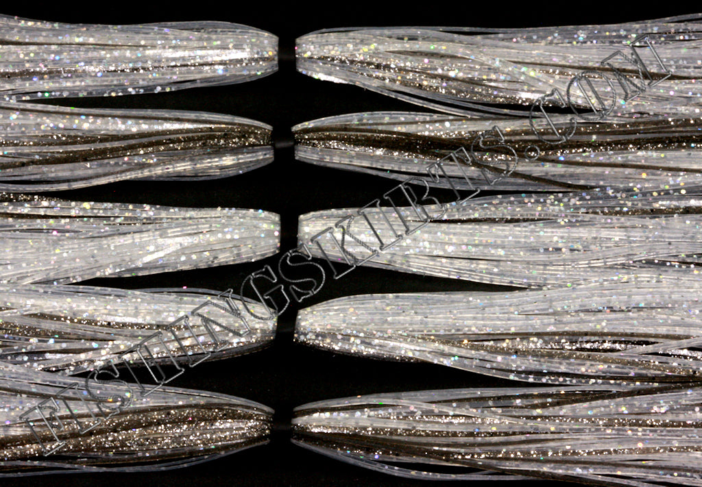 BOSS Banded Skirts, Satin Shad, 5 pack of 55 strand 100% silicone skirts with black band.
