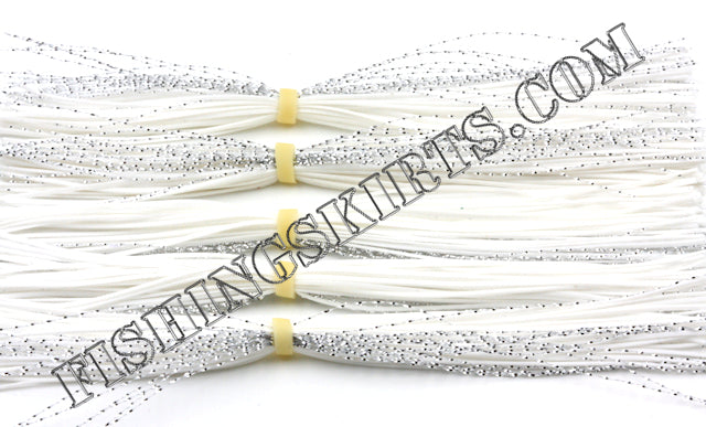 BOSS Banded Skirts, White Silver Flash, 5 pack of 55 strand 100% silicone skirts with white band.