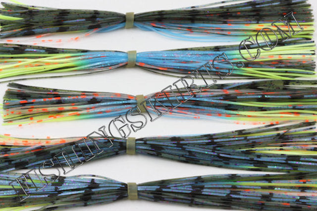 BOSS Banded Skirts, Crazy Gill, 5 pack of 55 strand 100% silicone skirts with off white band.