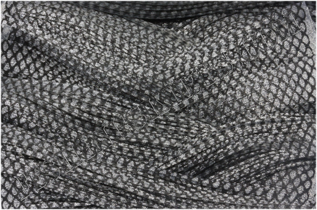 Clear silver neon (very fine) glitter (522) with black printed fish scale pattern throughout. 22 strands per tab. 10 tabs per pack