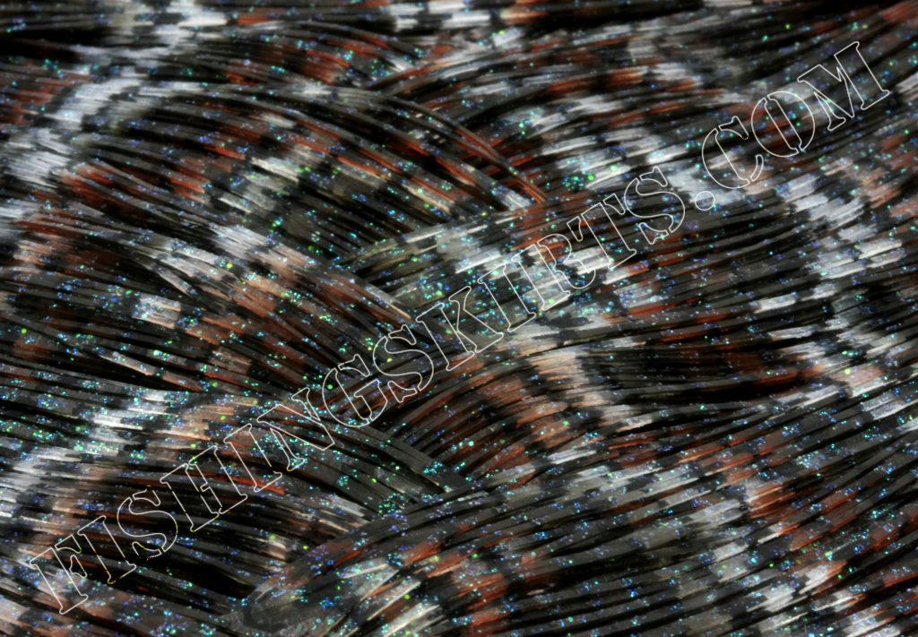 This is one version of Cumberland craw in Living Image. Alternating bands of Clear, dark green pumpkin and burnt orange, with black barbed wire print and green glitter.