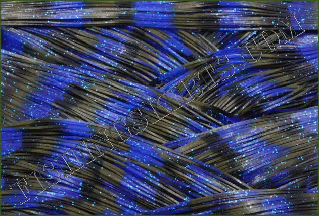 Living Image Okeechobee Craw is made up of  blue blue glitter (004), black blue glitter (010), and green pumpkin blue glitter (154) in a alternating stripe pattern. 10 tabs per pack