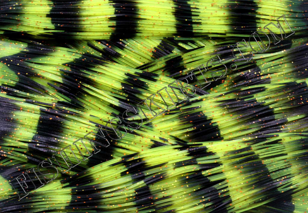 Living Image Yellow Jacket is made up of a black and chartreuse repeating stripe pattern, which is repeating throughout the tab with large copper glitter and small gold glitter. 22 strands per tab. 10 tabs per pack