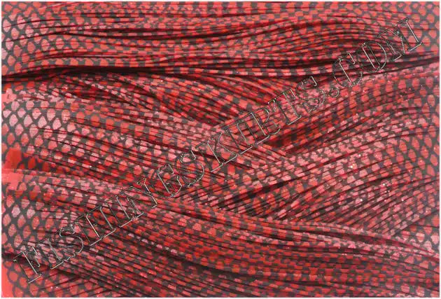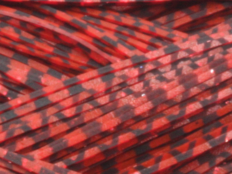 Transparent red with red glitter (383) with black fish scale print. 22 strands per tab. 10 tabs per pack